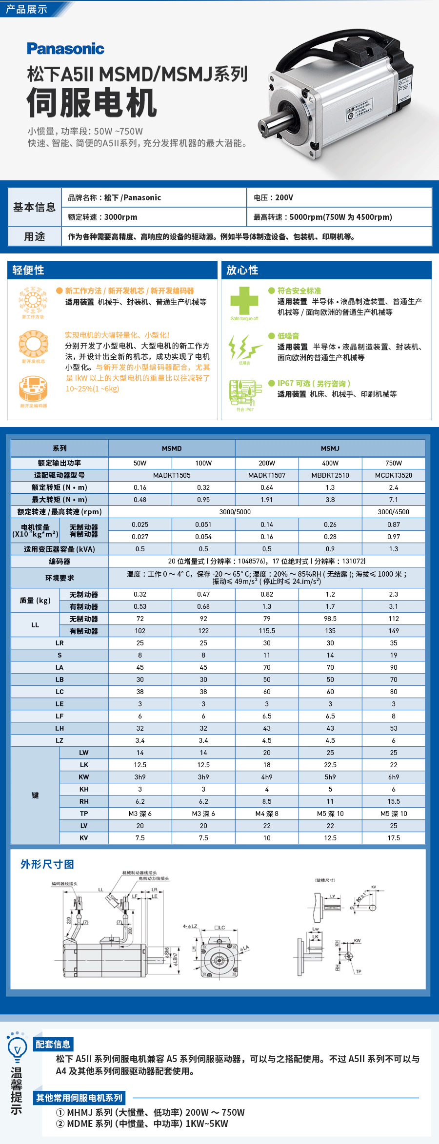小惯量配置,额定转速3000RPM,可以保证设备的快速动作响应。
