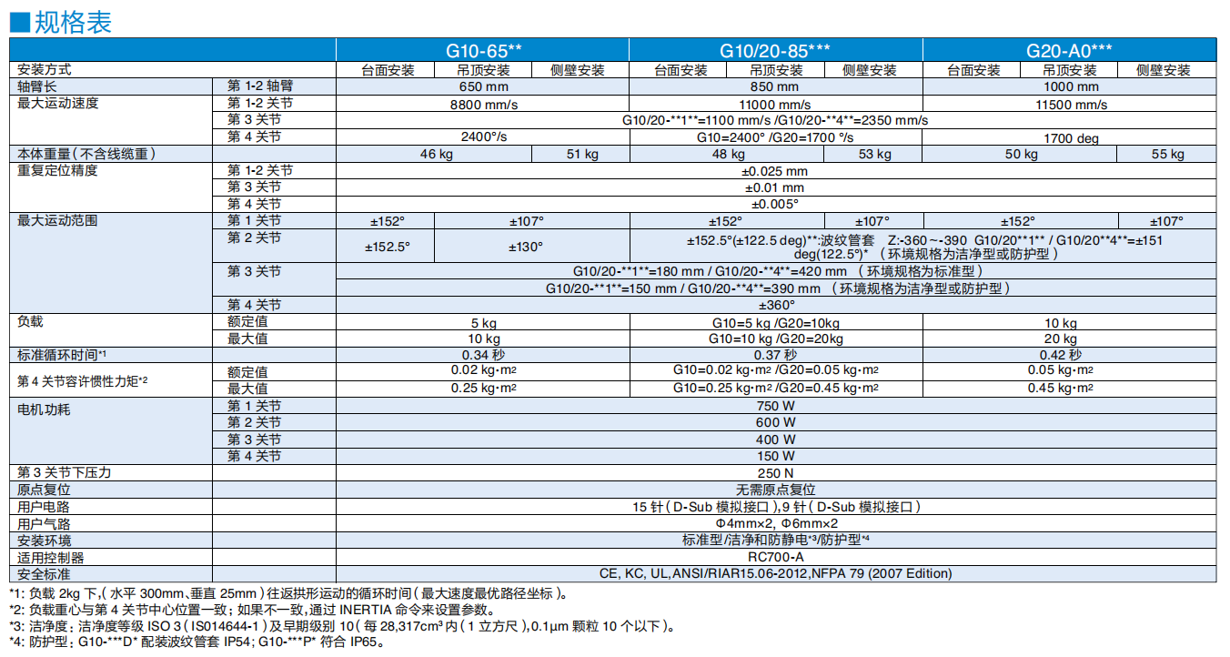 爱普生G系列机器人拥有高速度、高精度和低震动特性。可满足任意应用需求,其中包括支持多任务、洁净车间、防静电或冲洗环境中使用的机型。