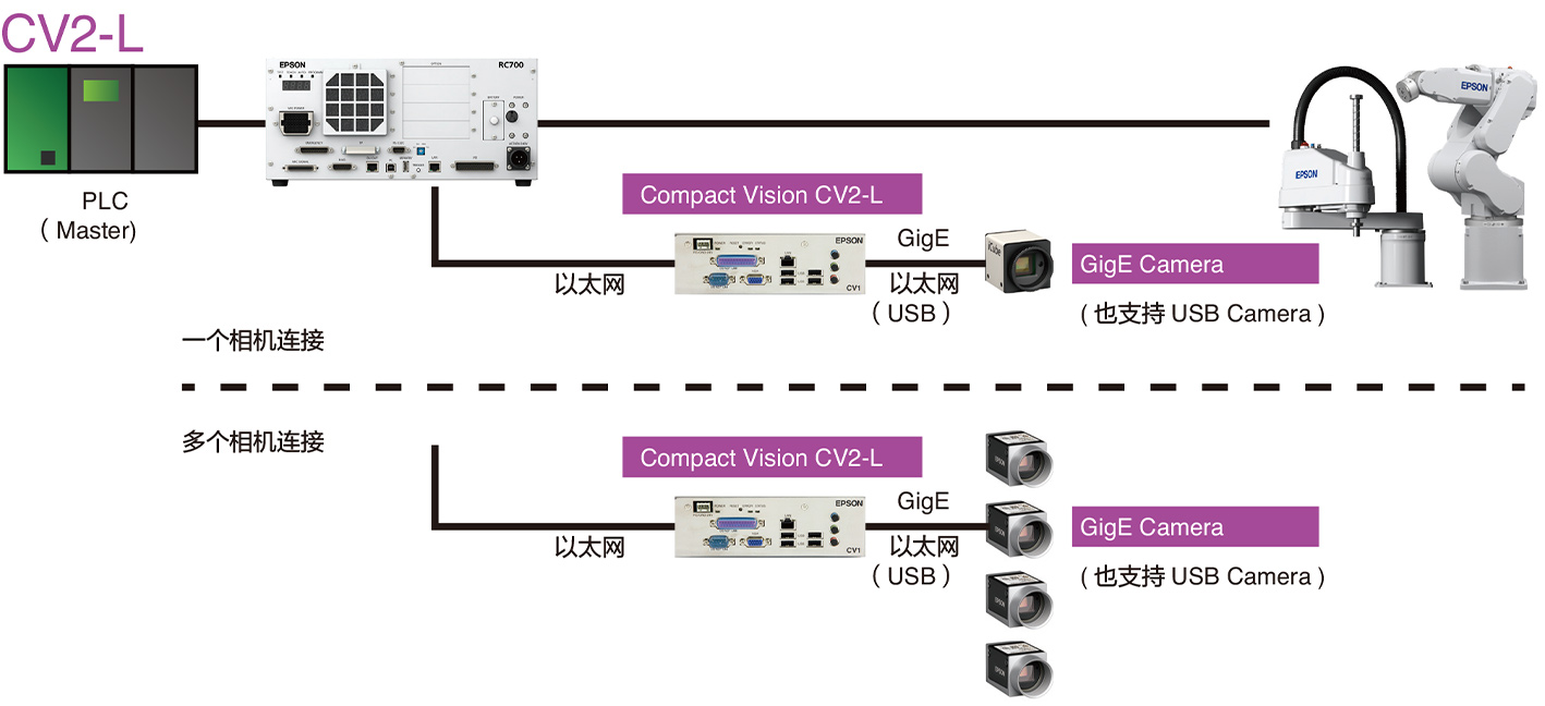 | 最多相机数量 | 6 (4GigE, 2USB, 需要爱普生照相机和电缆) | |||