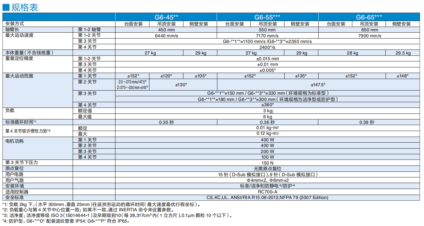 爱普生G系列机器人拥有高速度、高精度和低震动特性。可满足任意应用需求,其中包括支持多任务、洁净车间、防静电或冲洗环境中使用的机型。