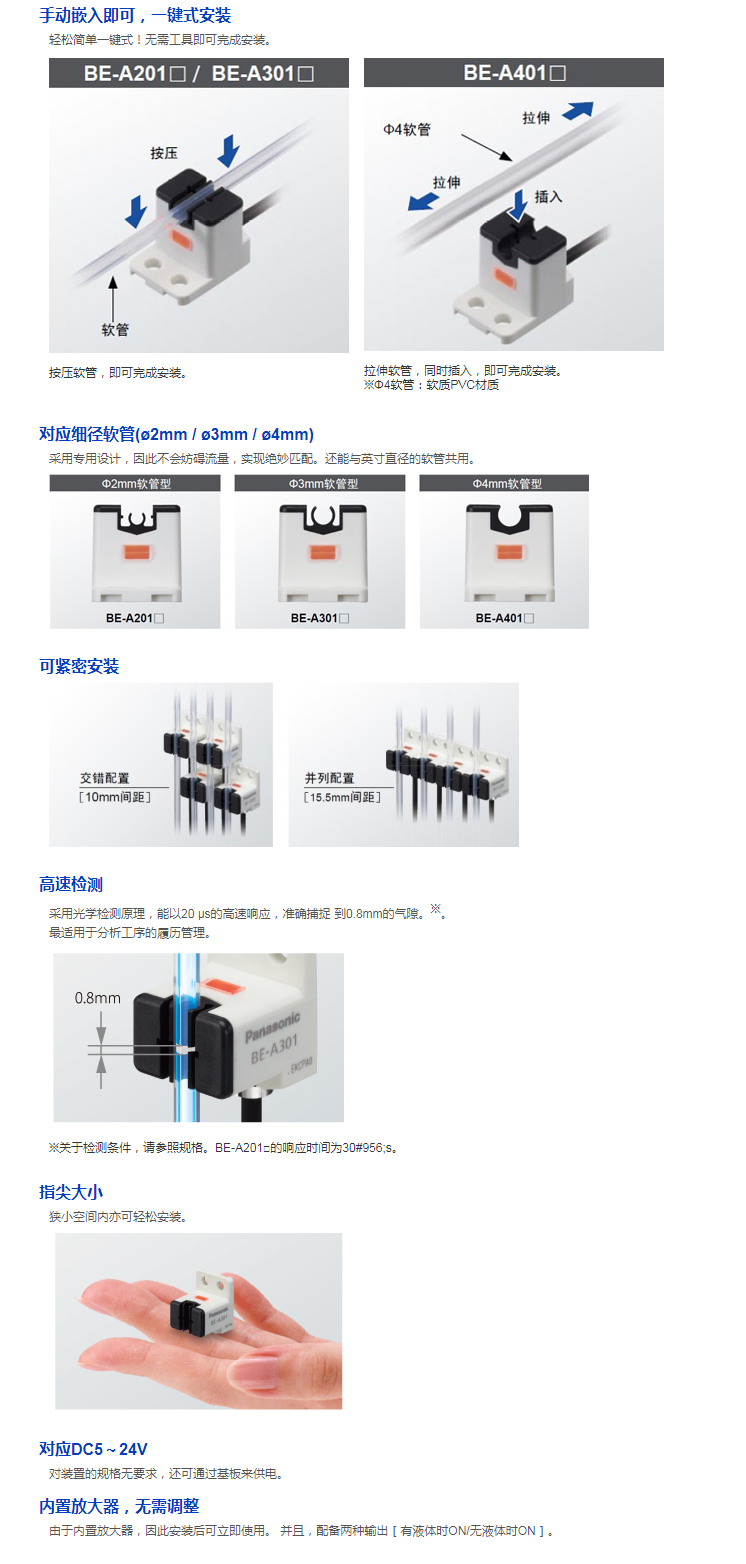 对应细径软管的气泡检测传感器